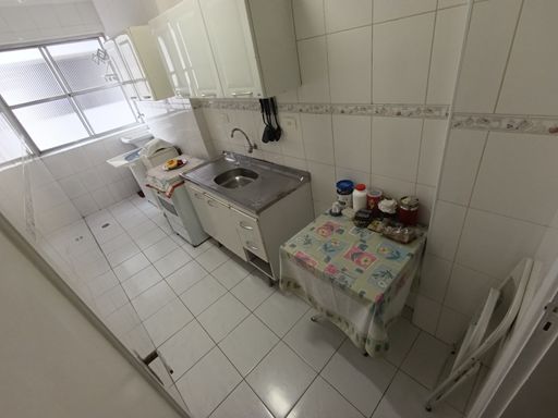 Nesse apartamento as lâmpadas vao sempre trabalhar pouco. A iluminação natural é ótima. Ventilação cruzada com 2 faces adjacentes. Planta padrão, sala e quarto com janela de frente para a Avenida Presidente Wilson, cozinha, área de serviço e banheiro com janelas para a lateral. A 1 quadra da praia do Gonzaguinha, e supermercado Extra.