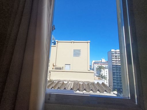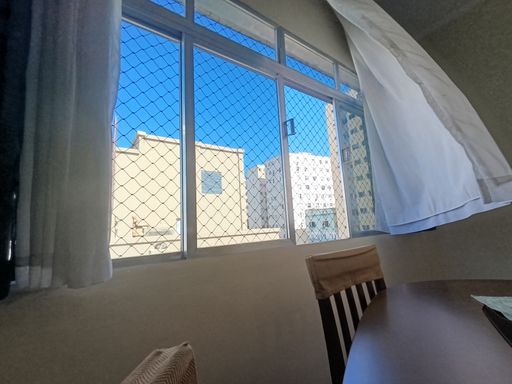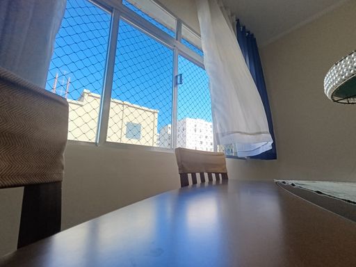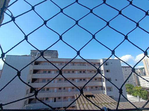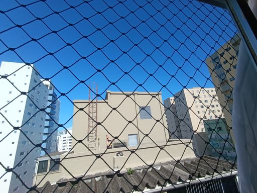 Localização: O imóvel oferece uma vista urbana livre, permitindo boa ventilação e entrada de luz solar, localizado na Rua Martim Afonso, número 60, Edifício Praiamar.