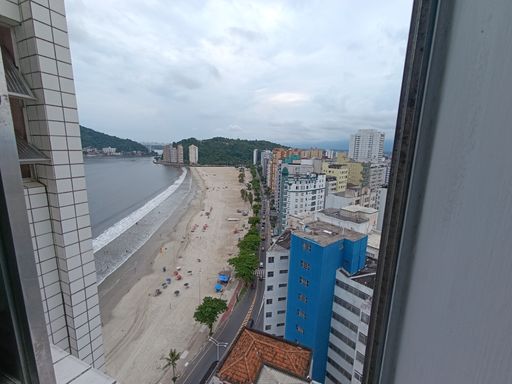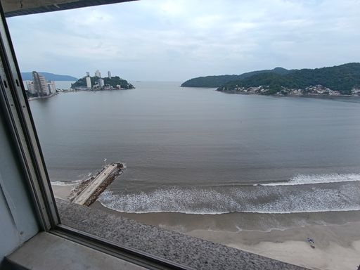 Fica em São Vicente na avenida da praia do Gonzaguinha, 21º andar.