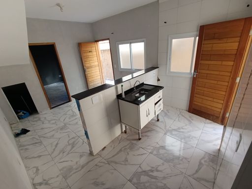 2 quartos, sala, cozinha americana, área de serviço, banheiro e quintal.