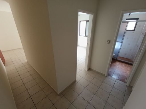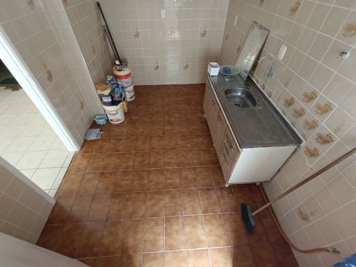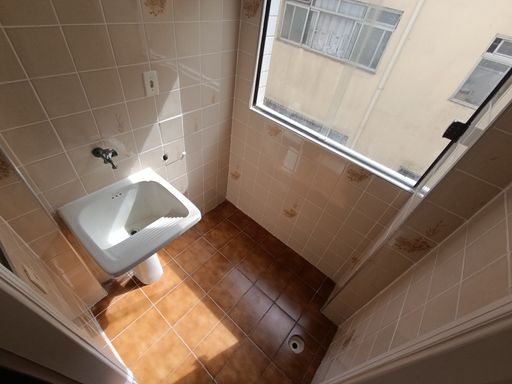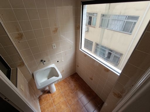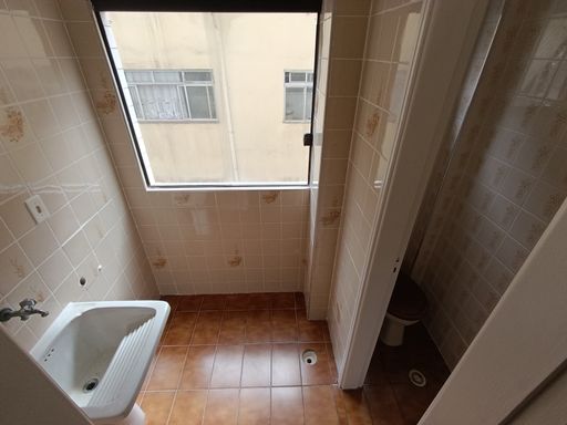 Amplo apartamento com 2 dormitórios, sala, cozinha, banheiro, e área de serviço com banheiro.