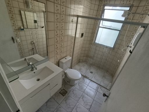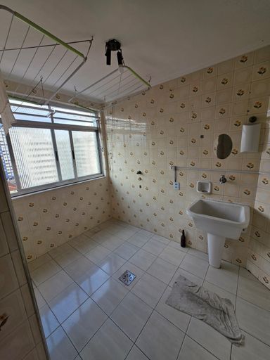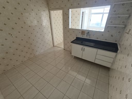 Amplo apartamento com 2 dormitórios, sala, cozinha, e ampla área de serviço com banheiro.